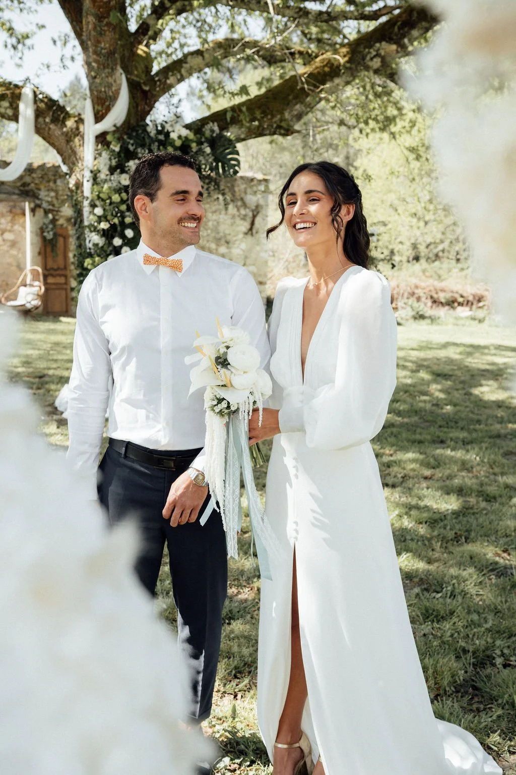 Chaque robe est fabriquée artisanalement en France, avec une attention particulière portée aux matières et aux coupes. Les robes de mariée Claudine subliment la silhouette avec naturel et raffinement.